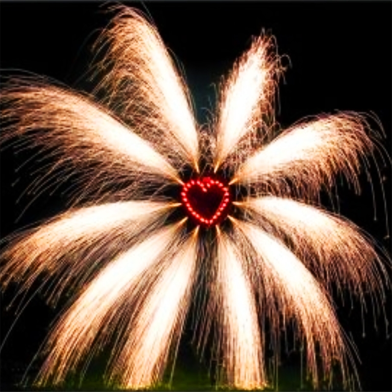 Red Heart Pattern in Front of a silver Sun (non rotating)