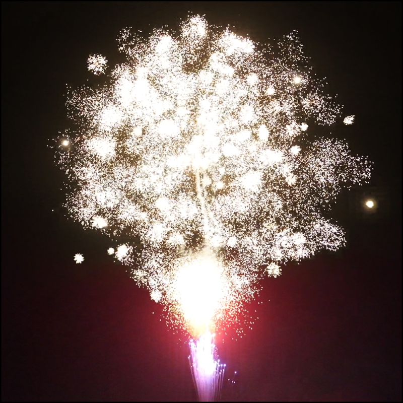Mine effect with Blue Stars change to Crackling Flowers;Special Red Strobe Tail to Silver Crackling Flowers;Duration est. 3s, 30mm, 16 Sh;Packing: 6/1
