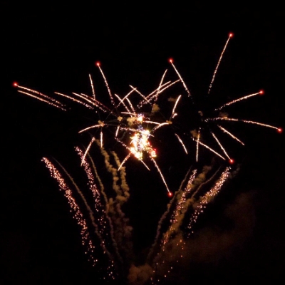 fan shape of Silver Tiger Tail and Royal Brocade Crown to Red & Gold Glittering with center of Red & Green Falling Leaves w/Blue Star