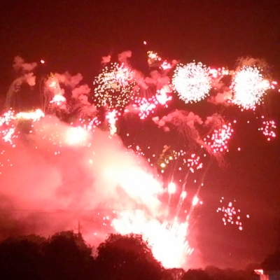 Red Strobe Mine + Titanium Salute w/Red Tail up & Red Strobe Mine + Red Falling Leaves & Gold Glittering Stars w/Red Tail up