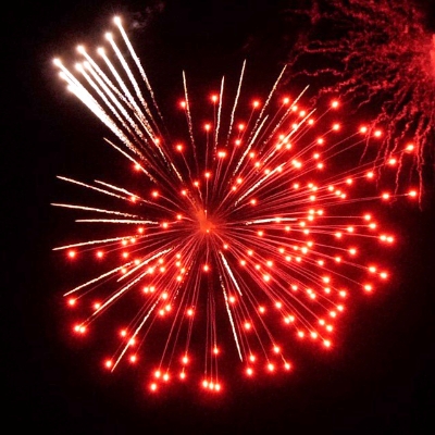 Mushroom-Cloud effect (Half Red Peony with Goldglitter Ring and Silver Comets)