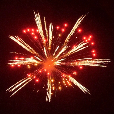 Double Palm Tree (Gold Wave Palm w/Red Stars) with Golden Glittering Pistil